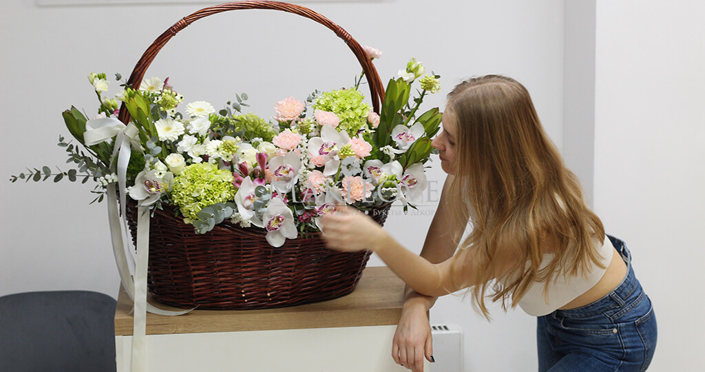 На сайте магазина можно оставить заказ круглосуточно. К каждой флористической композиции прилагаем бесплатную открытку с комплектом для правильного ухода за ней: по вашему желанию нанесем на открытку текст.