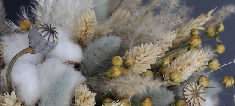 «Зимний» дизайн требует правильного выбора декоративной зелени. Например, дополнить его можно цинерарией – ее листья выделяются дымчато-серым оттенком, который выглядит как припорошенный снег. Отлично смотрится букет из веток на Новый год: он создает праздничное настроение и подчеркивает торжественность события. Отлично смотрится хвоя в сочетании с розами, красными ягодами гиперикума или белым хлопком. Зимний колорит подчеркнут брунии с серебристыми шариками. Новогодняя композиция часто создается из нобилиса – хвои пихты, которая выделяется необычным голубоватым оттенком и пышностью. Она может долго обходиться без воды, а при высыхании не обсыпается.